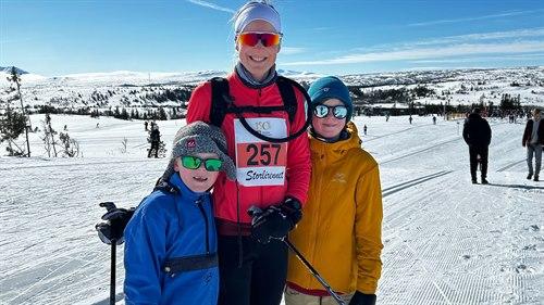 Rita styres ikke lenger av kontrollbehov over mat og trening. Her med to av de tre barna under årets Storlirenn.Livet i dag