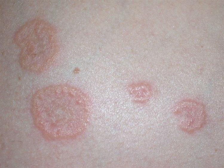 Starter vanligvis som kløende urtikarialignende utslett på abdomen eller ekstremiteter. Utslettene utvider seg etter hvert