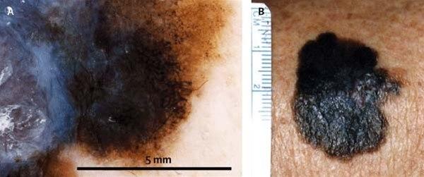 - Diameter: Melanomer måler vanligvis over seks millimeter i diameter