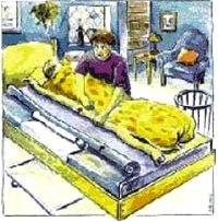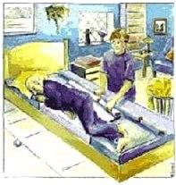 Laken skiftes under den syke mens den syke ligger på siden (se ill. nedenfor).
