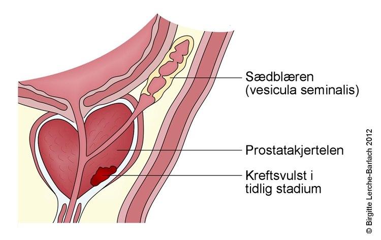 Prostata heter blærehalskjertelen på norsk. Som navnet tilsier, ligger kjertelen under urinblæren. Første del av urinrøret går gjennom kjertelen. Kjertelens hovedoppgave er å bidra med blandevæske slik at sæden holder seg flytende. Kjertelen vokser gjennom hele livet. Etter hvert som menn blir eldre, kan en del av mennene begynne å merke symptomer fra denne veksten. Vannlatingsplager er ganske vanlig hos menn over cirka 55 år, både hos de med godartet forstørret prostata og hos de med prostatakreft. En god måte for å systematisk kartlegge vannlatingsplager, er å anvende et standardisert internasjonalt spørreskjema som Internasjonal prostata symptomskår (I-PSS). Blod i urinen eller sædvæsken kan være både et tidlig og sent tegn, men sees også ved andre sykdommer i urinveiene eller infeksjon. Dersom en kreftsvulst fra prostata vokser inn i nærliggende vev, kan det oppstå smerter i bekkenet og rundt endetarmen. Uttalt, langvarig utmattelse og utilsiktet vekttap er sene symptomer. Hos noen kan de første symptomene komme som følge av spredning av sykdommen. Symptomene vil da vanligst komme fra skjelettet i form av bensmerter.