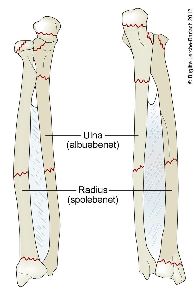 Underarmen består av to bein, spolebeinet (radius) på tommelsiden og albuebeinet (ulna) på lillefingersiden. Disse to beina holdes fast sammen av bindevev (syndesmose). Beina danner albueleddet sammen med overarmsbeinet (humerus), og håndleddet sammen med håndrotsbeina.