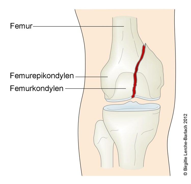 Brudd i nedre del av lårbeinet oppstår oftest ved alvorlige ulykker og skader. I noen tilfeller holder det å gipse beinet, men i mange tilfeller må bruddet festes med plater og skruer.
