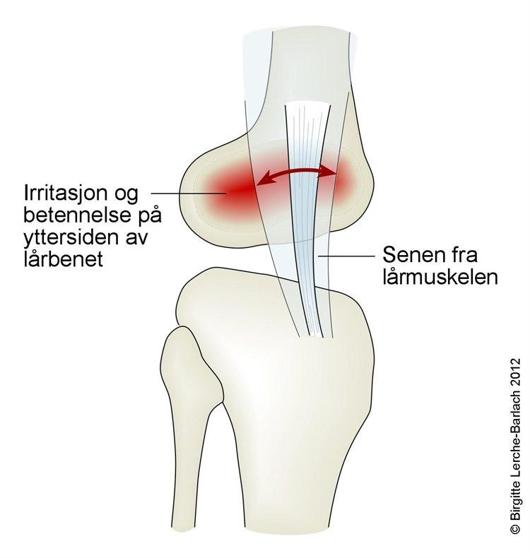 På utsiden av låret går det en stor og sterk bindevevshinne fra hoftekammen og ned til øvre/ytre side på leggen. Dette bindevevsdraget kalles tractus iliotibialis eller iliotibialbåndet. Nederst på yttersiden av lårbeinet befinner det seg en slimpose like innunder iliotibialbåndet. Ved langvarig løping, sykling, gåing, skigåing, kan det bli mye friksjon mellom iliotibialbåndet og lårbeinet - det vil si at båndet gnisser mot beinfremspringet på yttersiden av lårbeinet, den såkalte "femurkondylen" - og det kan føre til at slimposen bli betent. En slik betennelse kalles langdistansekne eller bare løperkne - på fagspråket iliotibialbånd syndrom.