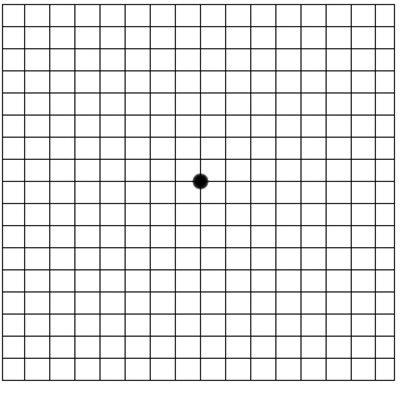 Amslers synstest brukes for å påvise såkalt våt makuladegenerasjon. Du kan forstørre bildet under ved å klikke på det, og ta testen på skjermen. Men det er nok best å skrive ut skjemaet, og teste på et ark. Følg oppskriften på arket.