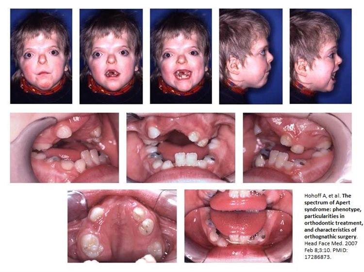 - Hohoff A, Joos U, Meyer U, et al.. The spectrum of Apert syndrome: phenotype, particularities in orthodontic treatment, and characteristics of orthognathic surgery. Head Face Med. 2007 Feb 8;3:10. doi: 10.1186/1746-160X-3-10.