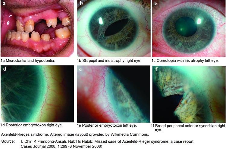 Medfødt, autosomal dominant tilstand som særlig rammer øyne og tenner. Funksjonsnedsettelsen skyldes feilutvikling i første tredjedel av svangerskap. Også andre organer kan være rammet, og alvorlighetsgraden av sykdommen varierer mye. Genene PITX2 (4q25) and FOXC1 (6p25) har mutasjoner, disse styrer transkipsjon
